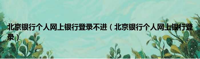 北京银行个人网上银行登录不进(北京银行个人网上银行登录)