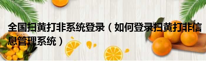 全国扫黄打非系统登录(如何登录扫黄打非信息管理系统)