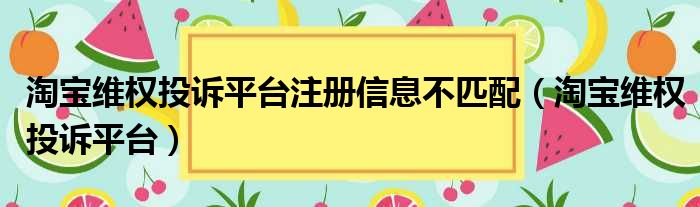 淘宝维权投诉平台注册信息不匹配(淘宝维权投诉平台)