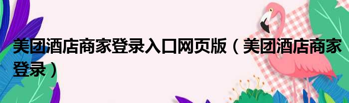 美团酒店商家登录入口网页版(美团酒店商家登录)