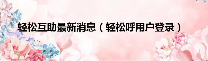 大家好,小房来为大家解答以上的问题。轻松互助最新消息,轻松呼用户登录这个很多人还不知道,现在让我们一起来看看吧!