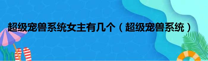 大家好,小房来为大家解答以上的问题。超级宠兽系统女主有几个,超级宠兽系统这个很多人还不知道,现在让我们一起来看看吧!