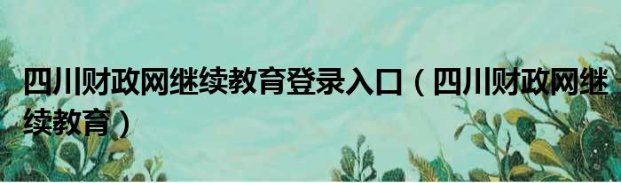 四川财政网继续教育登录入口(四川财政网继续教育)