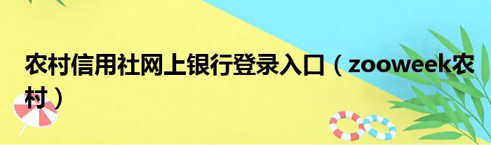 农村信用社网上银行登录入口(zooweek农村)