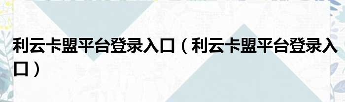 利云卡盟平台登录入口(利云卡盟平台登录入口)