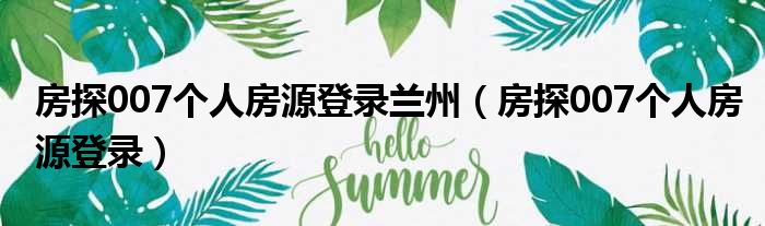 房探007个人房源登录兰州(房探007个人房源登录)