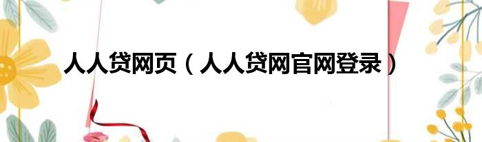 大家好,小房来为大家解答以上的问题。人人贷网页,人人贷网官网登录这个很多人还不知道,现在让我们一起来看看吧!