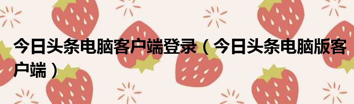 今日头条电脑客户端登录(今日头条电脑版客户端)