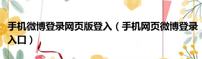 手机微博登录网页版登入(手机网页微博登录入口)