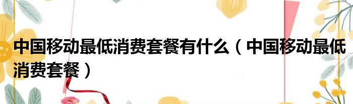 中国移动最低消费套餐有什么(中国移动最低消费套餐)
