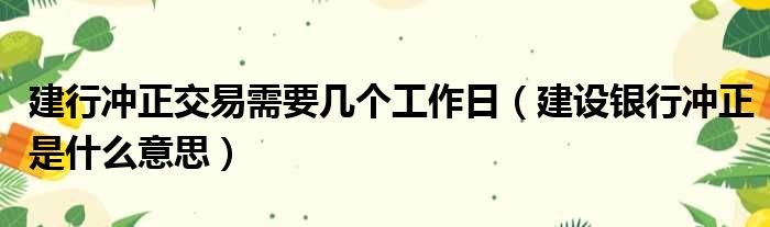 建行冲正交易需要几个工作日(建设银行冲正是什么意思)