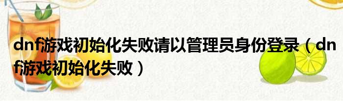 dnf游戏初始化失败请以管理员身份登录(dnf游戏初始化失败)