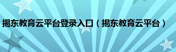 揭东教育云平台登录入口(揭东教育云平台)
