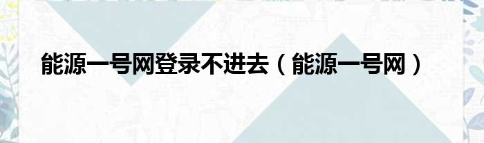 大家好,我是小五,我来为大家解答以上问题。能源一号网登录不进去,能源一号网很多人还不知道,现在让我们一起来看看吧!