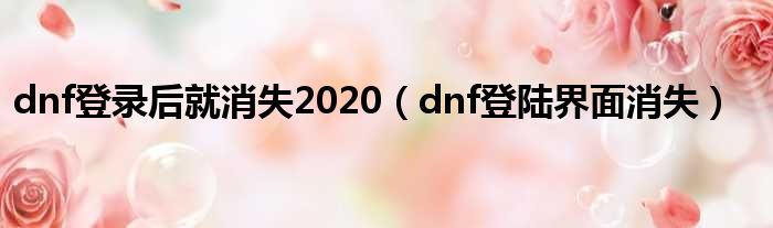 dnf登录后就消失2020(dnf登陆界面消失)