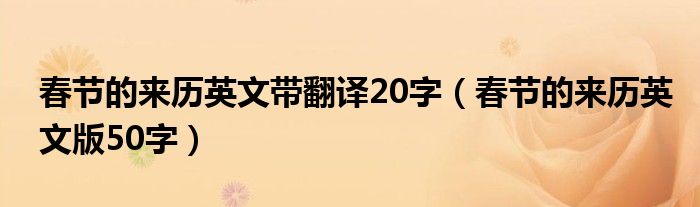 导读 大家好,我是小曜,我来为大家解答以上问题。春节的来历英文带翻译20字,春节的来历英文版50字很多人还不知道,现在让我们一起来看看吧!1...