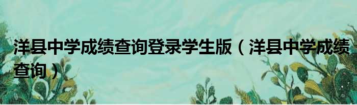 洋县中学成绩查询登录学生版(洋县中学成绩查询)