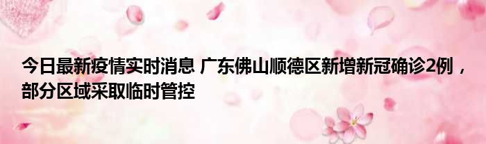 今日最新疫情实时消息 广东佛山顺德区新增新冠确诊2例,部分区域采取临时管控
