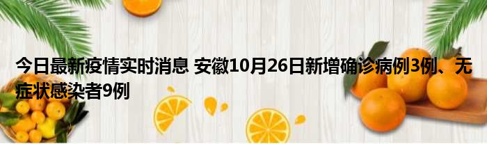 今日最新疫情实时消息 安徽10月26日新增确诊病例3例、无症状感染者9例