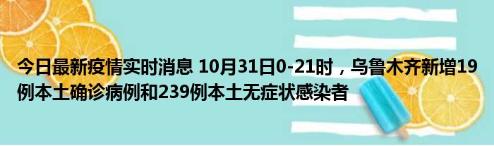 今日最新疫情实时消息 10月31日0-21时,乌鲁木齐新增19例本土确诊病例和239例本土无症状感染者