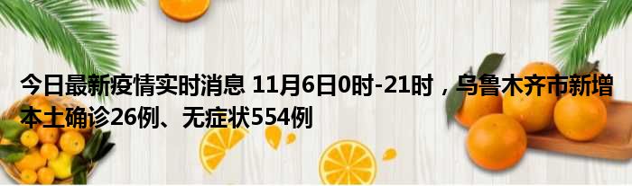 今日最新疫情实时消息 11月6日0时-21时,乌鲁木齐市新增本土确诊26例、无症状554例