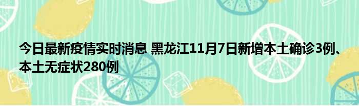 今日最新疫情实时消息 黑龙江11月7日新增本土确诊3例、本土无症状280例