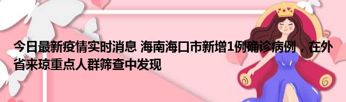 今日最新疫情实时消息 海南海口市新增1例确诊病例,在外省来琼重点人群筛查中发现