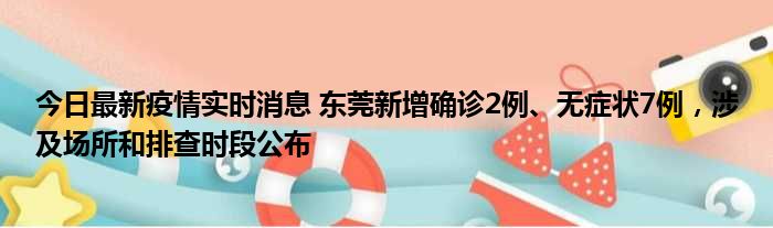 今日最新疫情实时消息 东莞新增确诊2例、无症状7例,涉及场所和排查时段公布