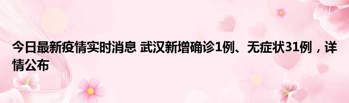 今日最新疫情实时消息 武汉新增确诊1例、无症状31例,详情公布