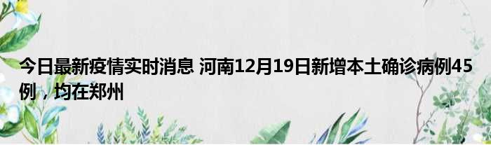 今日最新疫情实时消息 河南12月19日新增本土确诊病例45例,均在郑州