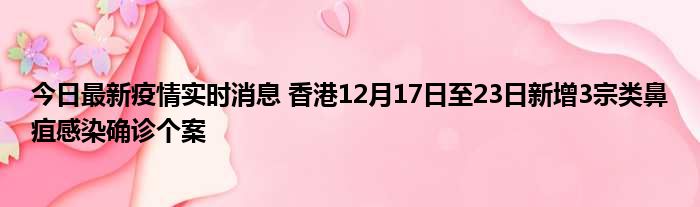 今日最新疫情实时消息 香港12月17日至23日新增3宗类鼻疽感染确诊个案