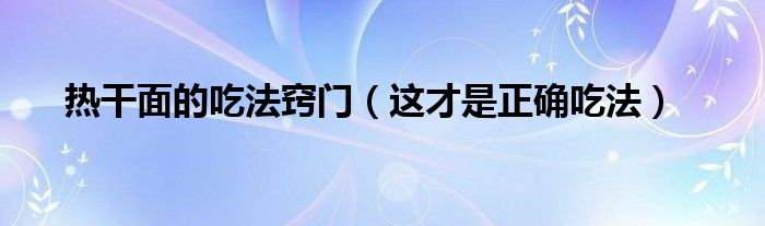 导读 大家好,阿郎来为大家解答以上问题。热干面的吃法窍门,这才是正确吃法很多人还不知道,现在让我们一起来看看吧!