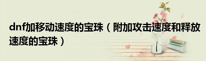 导读 大家好,阿郎来为大家解答以上问题。dnf加移动速度的宝珠,附加攻击速度和释放速度的宝珠很多人还不知道,现在让我们一起来看看吧!