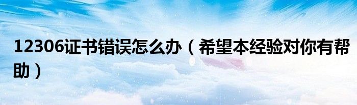 导读 大家好,阿郎来为大家解答以上问题。12306证书错误怎么办,希望本经验对你有帮助很多人还不知道,现在让我们一起来看看吧!