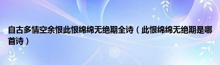 自古多情空余恨此恨绵绵无绝期全诗(此恨绵绵无绝期是哪首诗)
