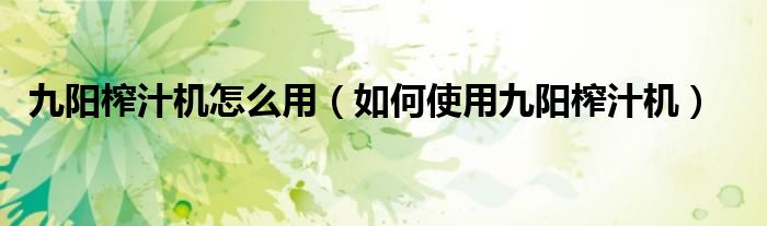 九阳榨汁机怎么用(如何使用九阳榨汁机)