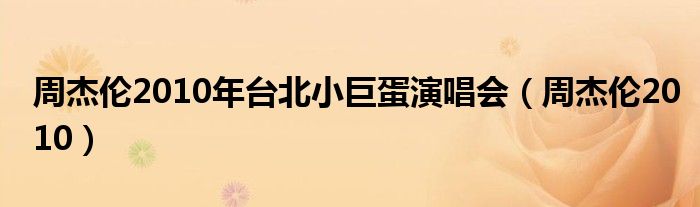 大家好,笑笑来为大家解答以上的问题。周杰伦2010年台北小巨蛋演唱会,周杰伦2010这个很多人还不知道,现在让我们一起来看看吧!