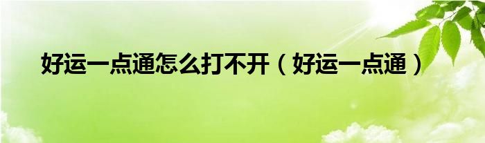 好运一点通怎么打不开(好运一点通)