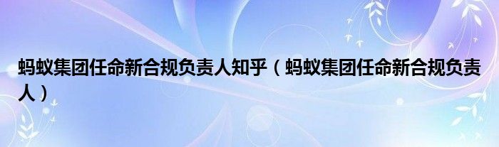蚂蚁集团任命新合规负责人知乎(蚂蚁集团任命新合规负责人)