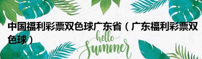 中国福利彩票双色球广东省(广东福利彩票双色球)