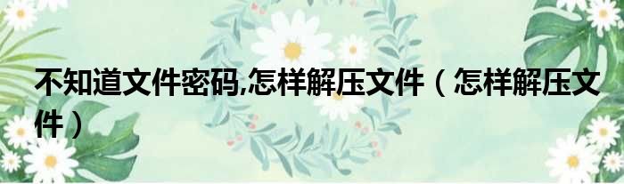 不知道文件密码,怎样解压文件(怎样解压文件)
