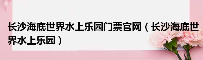 长沙海底世界水上乐园门票官网(长沙海底世界水上乐园)