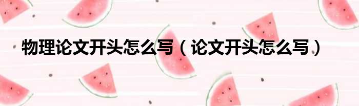 大家好,今天小六子来为大家解答以下的问题,关于物理论文开头怎么写,论文开头怎么写这个很多人还不知道,现在让我们一起来看看吧!