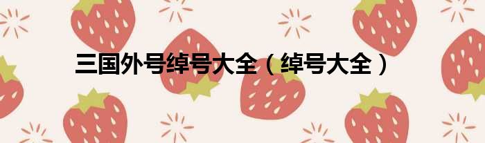大家好,今天小六子来为大家解答以下的问题,关于三国外号绰号大全,绰号大全这个很多人还不知道,现在让我们一起来看看吧!