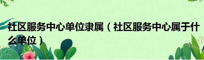 社区服务中心单位隶属(社区服务中心属于什么单位)