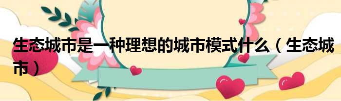 导读 大家好,今天小六子来为大家解答以下的问题,关于生态城市是一种理想的城市模式什么,生态城市这个很多人还不知道,现在让我们一起来看看吧