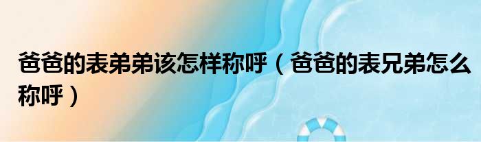 爸爸的表弟弟该怎样称呼(爸爸的表兄弟怎么称呼)