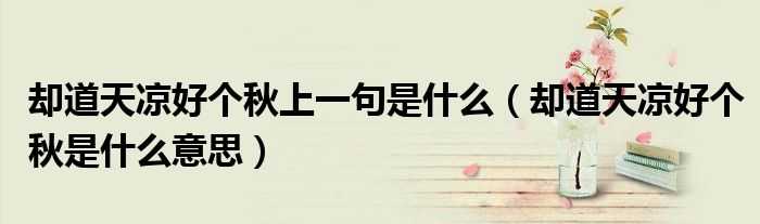 导读 大家好,今天小六子来为大家解答以下的问题,关于却道天凉好个秋上一句是什么,却道天凉好个秋是什么意思这个很多人还不知道,现在让我们一