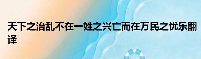 导读 大家好,今天小六子来为大家解答以下的问题,关于天下之治乱不在一姓之兴亡而在万民之忧乐翻译这个很多人还不知道,现在让我们一起来看看吧