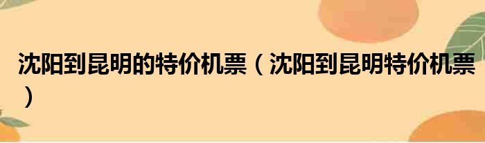 沈阳到昆明的特价机票(沈阳到昆明特价机票)